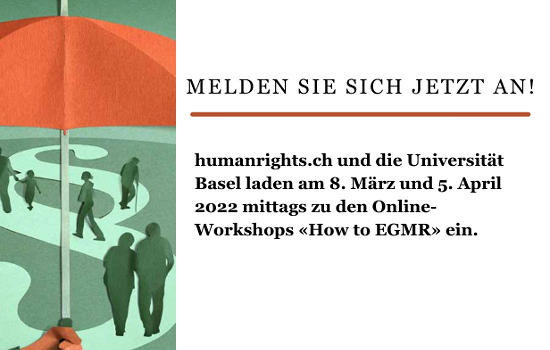 humanrights.ch und die Universität Basel laden am 8. März und 5. April 2022 mittags zu den Online-Workshops «How to EGMR» ein. Melden Sie sich jetzt an!