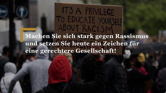 Setzen Sie heute ein Zeichen gegen Rassismus! Hier erfahren Sie mehr über Möglichkeiten, sich zu engagieren.