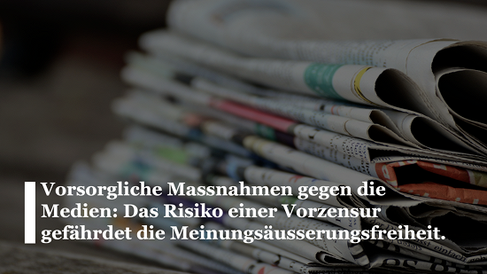 Am 16. Juni dieses Jahres hat der Ständerat einer Gesetzesvorlage zugestimmt, welche die Hürde für vorsorgliche Massnahmen gegenüber Medienberichten senken will. Diese Entscheidung hat gravierende Folgen für die Presse- und Meinungsäusserungsfreiheit, welche für die Ausübung aller Menschenrechte von grundlegender Bedeutung sind. Die sofortigen Veröffentlichungsverbote stellen gefährliche Instrumente dar, deren Missbrauch schnell zu einer Vorzensur führen kann.