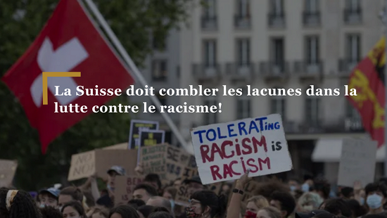 La Suisse doit respecter ses obligations en matière de droits humains découlant de Convention internationale sur l’élimination de toutes les formes de discrimination raciale, et offrir une protection renforcée aux personnes concernées. Pour une société plus juste, il est nécessaire d’investir dans la lutte contre la discrimination raciale aux niveaux structurel, institutionnel et individuel, de poursuivre les efforts déjà entrepris et de collaborer étroitement avec la société civile.
