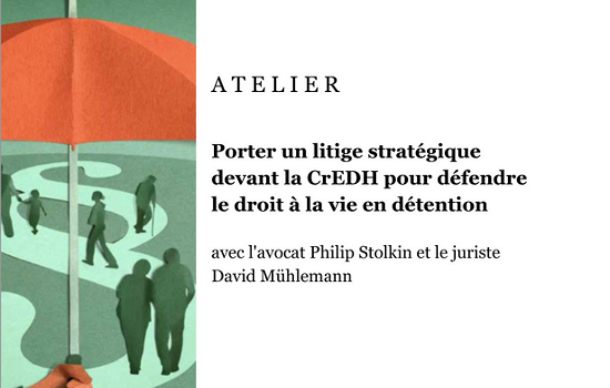 Notre atelier en ligne «Porter un litige stratégique jusqu’à la CrEDH pour défendre le droit à la vie en détention» aura lieu le 13 septembre 2022 de 12h15 à 13h45. Il reviendra sur le cas de Raphael K. ainsi que sur les stratégies concrètes développées pour mener ce litige. Vous pouvez d’ores et déjà vous inscrire à l’atelier.