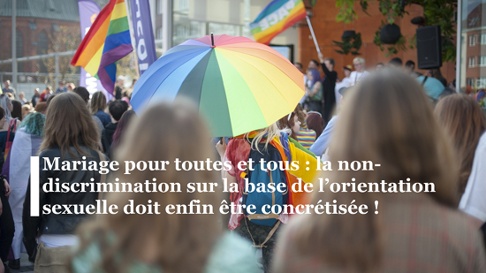 Les arguments s’opposant au mariage pour tous et toutes sont à rejeter du point de vue des droits humains. Le premier d’entre eux soutient qu’il n’est pas nécessaire de prévoir un mariage pour les couples de même sexe puisque le partenariat enregistré existe déjà pour ces unions. Des différences symboliques et substantielles persistent pourtant entre ces deux institutions, notamment les éléments considérés comme hautement importants de filiation (adoption conjointe, PMA) et de naturalisation (naturalisation facilitée).