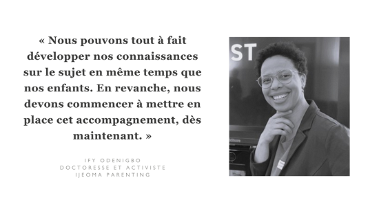 Entretien avec la doctoresse et activiste Ify Odenigbo, qui s’engage avec l’association Ijeoma Parenting pour l’empouvoirement et la santé des personnes Noires et celle des personnes racisées, et qui propose aussi régulièrement des rencontres pour les familles touchées par le racisme afin de leur donner un pouvoir d’agir.
