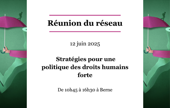 Lors de cette conférence de la Plateforme des ONG suisses pour les droits humains, nous discuterons des stratégies qui nous permettront de renforcer la mise en œuvre des droits humains.